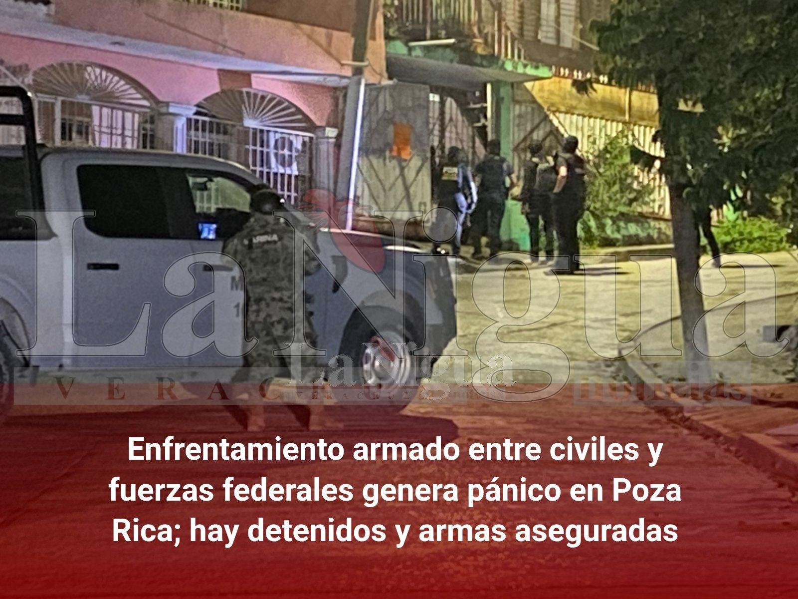 Poza Rica, Ver., 22 de diciembre de 2025.- Momentos de tensión y zozobra se vivieron la noche del sábado 21 de diciembre en la colonia Agustín Lara, en esta ciudad petrolera, tras registrarse un enfrentamiento armado entre civiles armados y fuerzas del orden público, lo que derivó en un amplio despliegue de seguridad y el cierre parcial de varias vialidades.