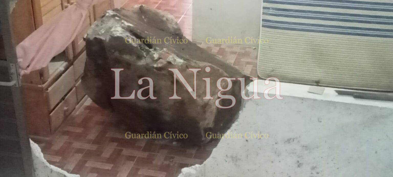 Fue alrededor de las 2 de la madrugada cuando de manera sorpresiva la roca se desprendió del cerro, cayendo primeramente sobre un descanso de la escalera que conduce a la azotea de la vivienda, para finalmente impactar la pared y terminar en el centro de uno de los cuartos.