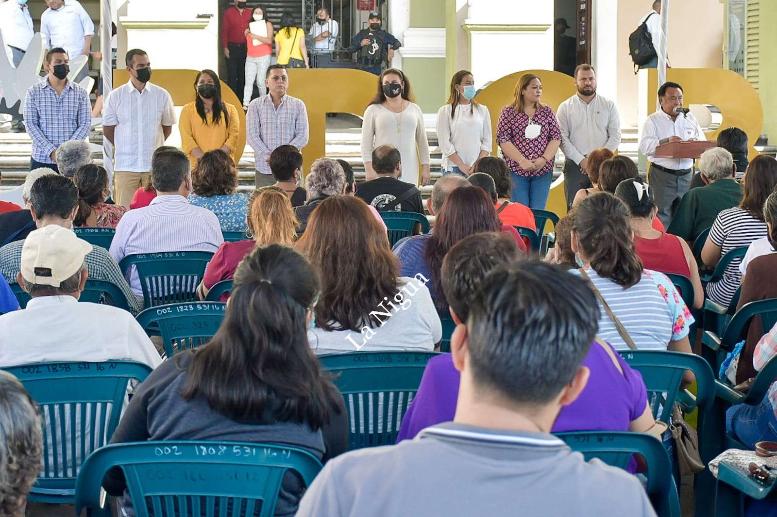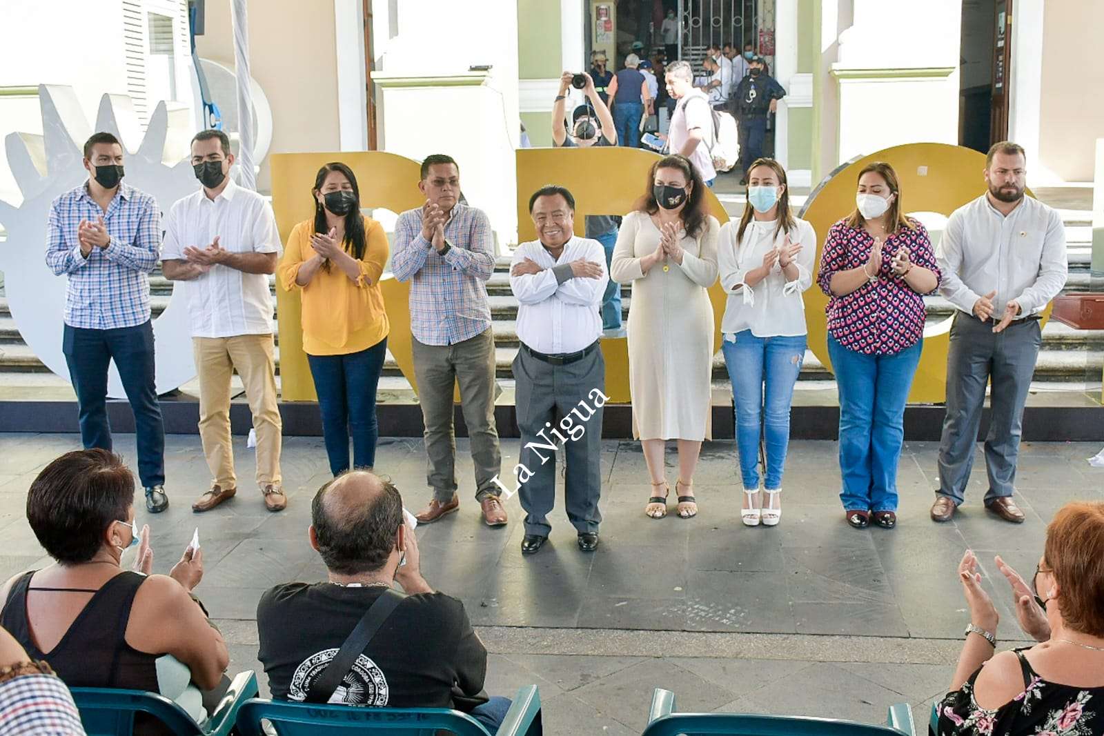 A la entrega realizada en el parque 21 de Mayo estuvieron presentes los regidores Daniel Vázquez Hernández, Isamar Balderas Flores, Georgina Aguilar Sánchez, María Luisa Martínez Ramírez, Jonathan Rosas Blanco y Sergio de la Llave Migoni.