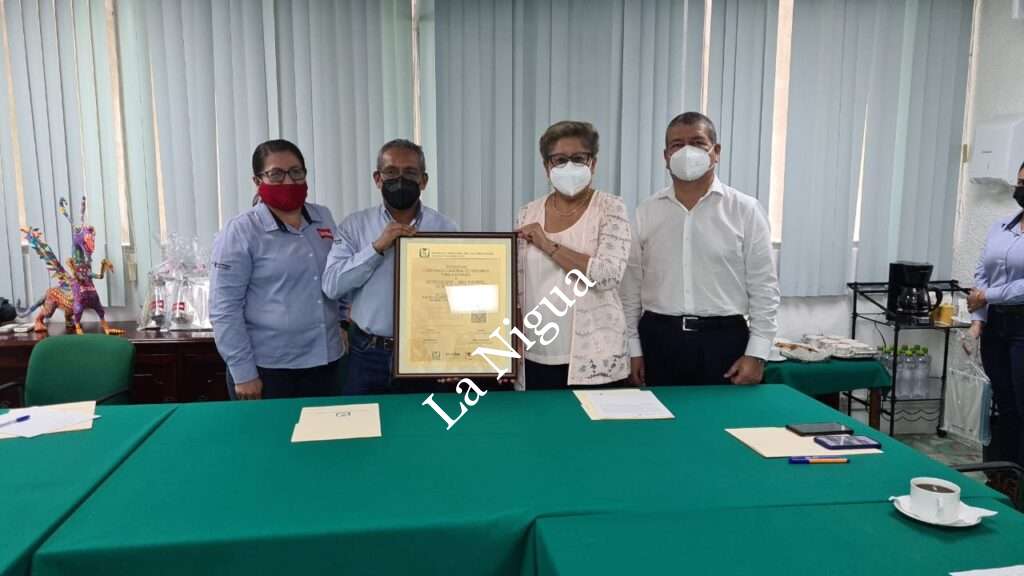 El Instituto Mexicano del Seguro Social (IMSS) hace entrega a la empresa Bio Papel Scribe, S. A. de C. V., ubicada en tres Valles Veracruz, el primer distintivo Entornos Laborales Seguros y Saludables (ELSSA) en el estado, de manos de la titular del IMSS en la entidad, doctora María Magdalena Chiquito Rivera.