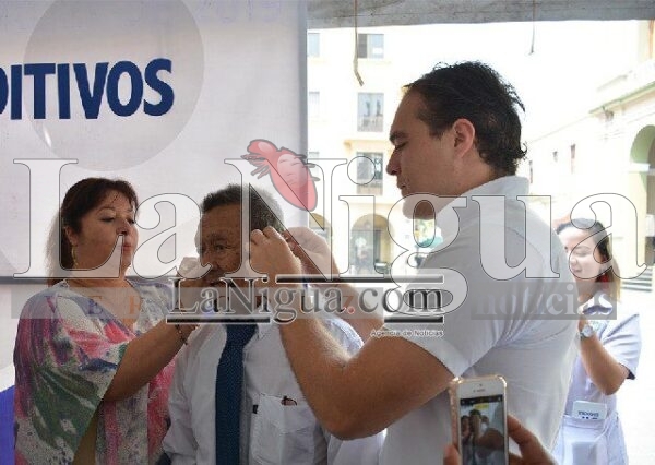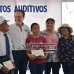 Posteriormente, acompañado de la coordinadora a cargo de Discapacidad, Laura Peña Pérez, llevo a cabo la entrega simbólica de las prótesis auditivas a la pequeña Isis Garrido, y los adultos mayores Elizabeth Reyes y Julio Álvarez, quienes ahora podrán reintegrarse a una vida social plena