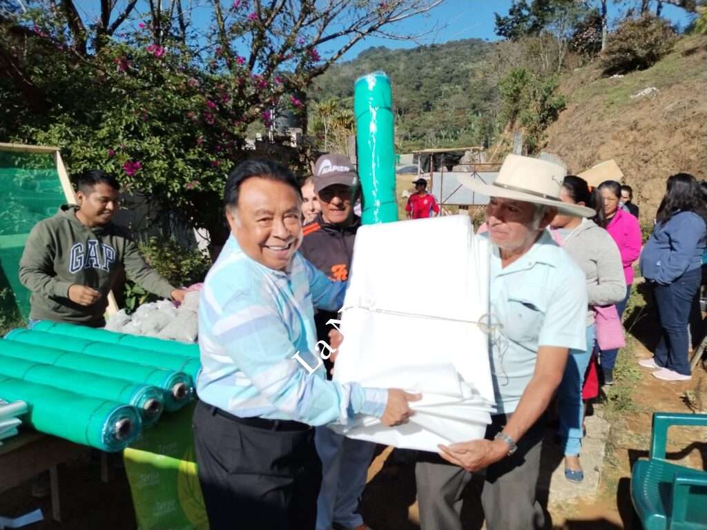 Córdoba, Ver., (10 de diciembre de 2022).- Con la finalidad de capacitar e incentivar a obtener productos de calidad en la zona, el Presidente Municipal, Juan Martínez Flores, realizó la entrega de malla mosquitera y rollos de plástico para invernadero, que beneficiará a 80 caficultores de las 7 “Escuelas de Campo” en la Sierra del Gallego para trabajar en la elaboración de túneles de secado que permitirá incrementar la producción de café de especialidad.