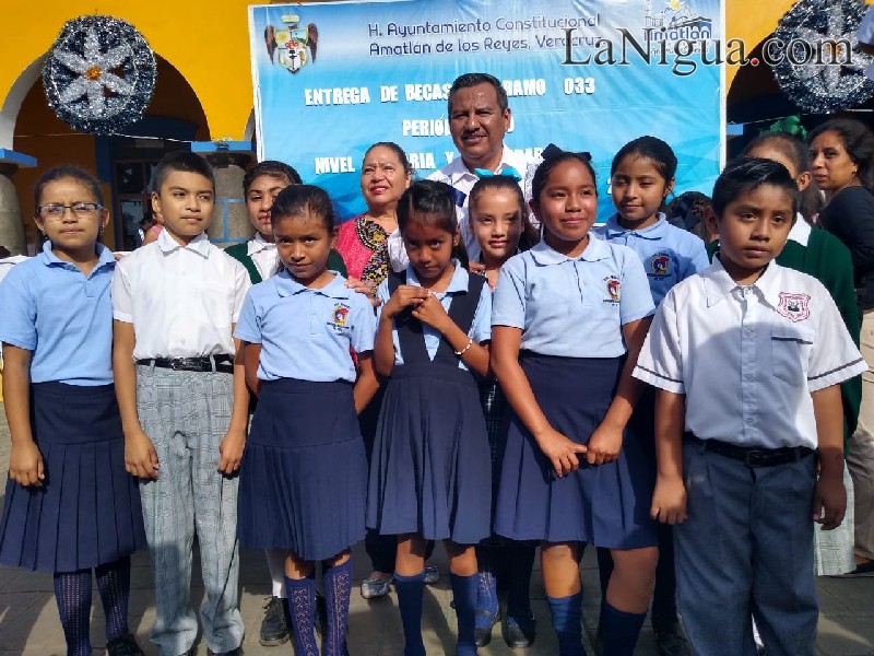 Amatlán de los Reyes Ver.13 de Diciembre de 2019. – Cómo parte de las acciones en favor de la educación que implementa el alcalde Eduardo Rojas Camacho, el día de hoy se llevó a cabo la entrega de 800 becas del ramo 033 a diferentes estudiantes de educación básica primaria y secundaria de las comunidades pertenecientes al municipio.
