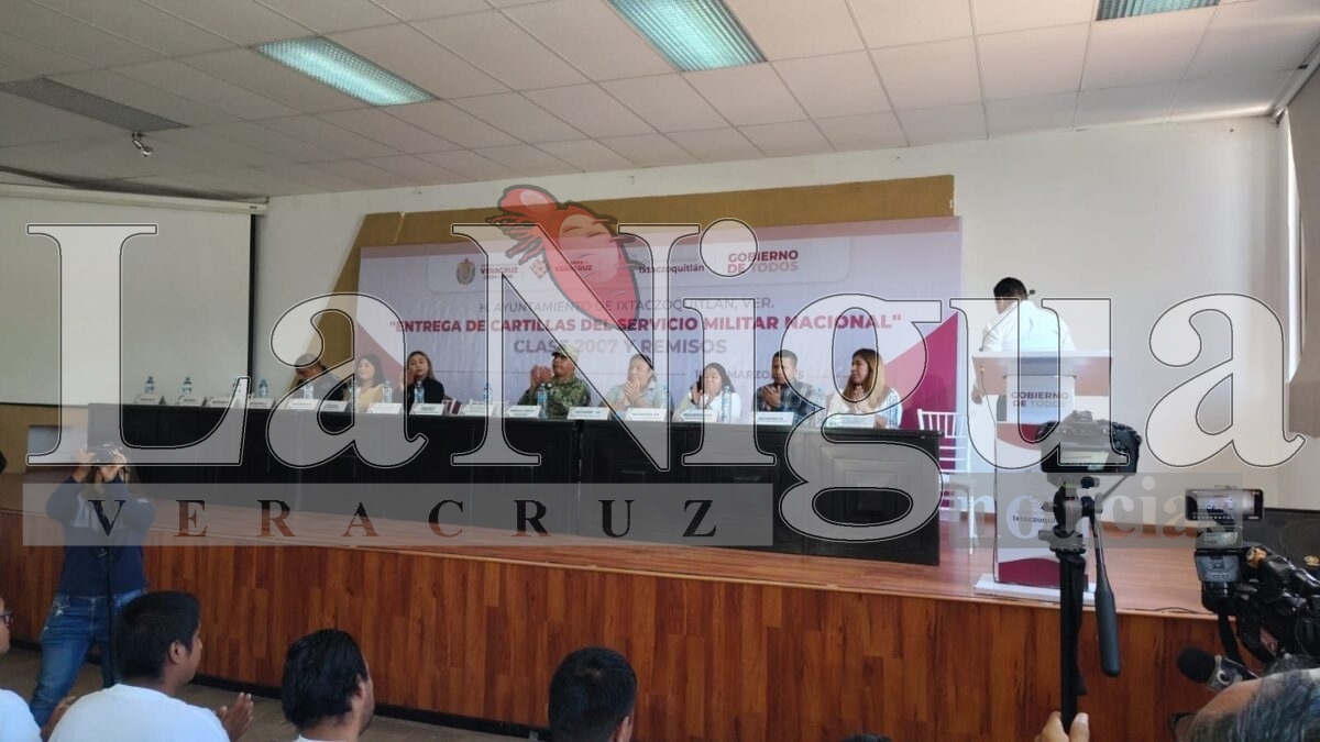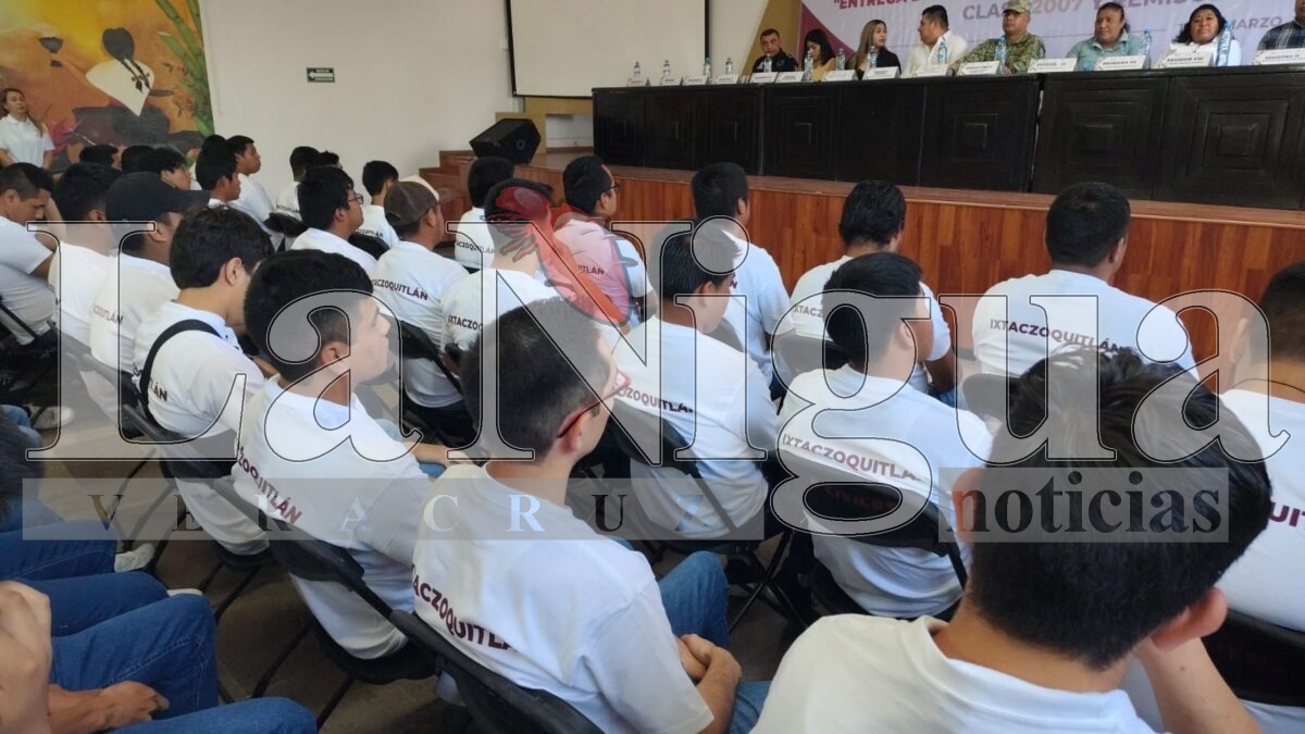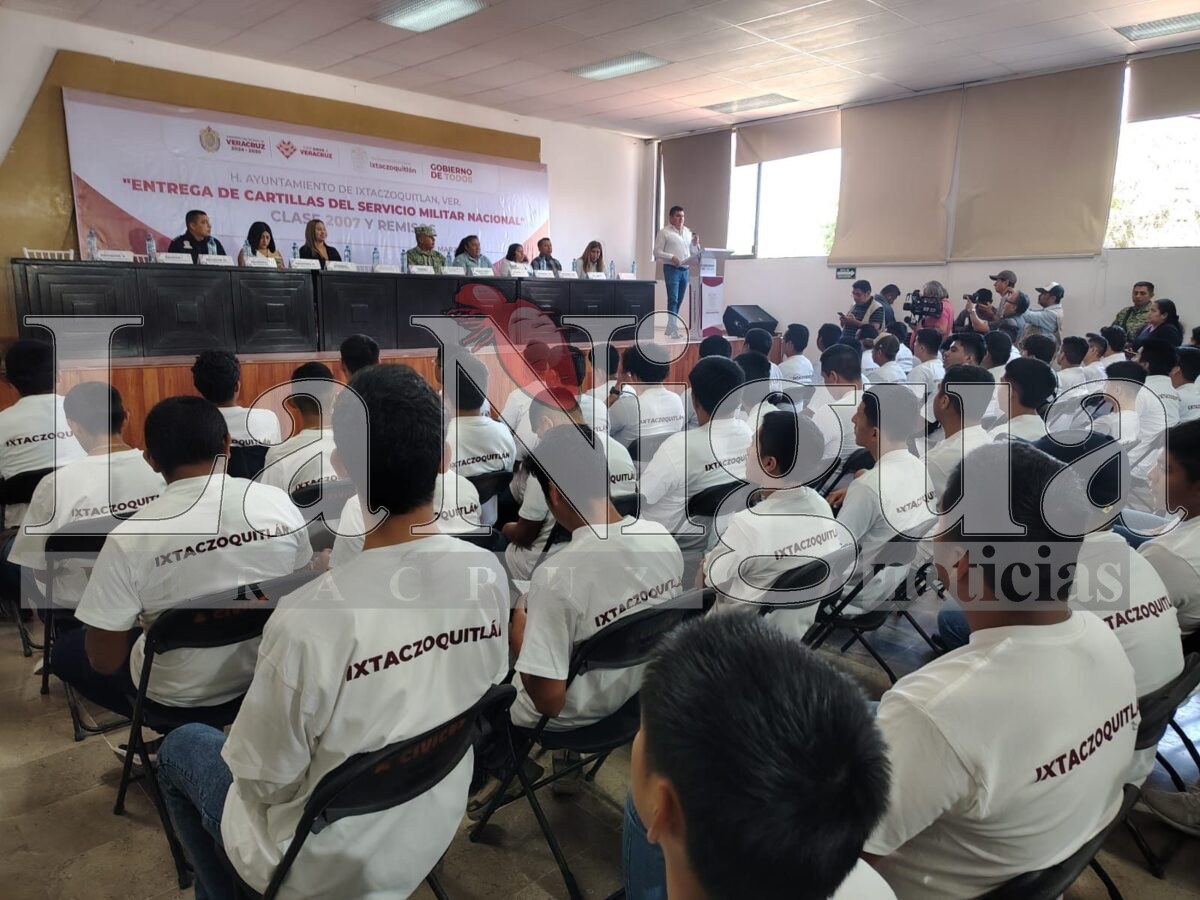 Ixtaczoquitlán, Ver.- En un acto protocolario, el presidente municipal de Ixtaczoquitlán, Nahúm Álvarez Pellico, acompañado por miembros del cabildo y el Teniente Coronel de Infantería José Rutilio Lara Torres, llevó a cabo la entrega de Cartillas del Servicio Militar Nacional (SMN) a jóvenes de la clase 2007 y remisos.