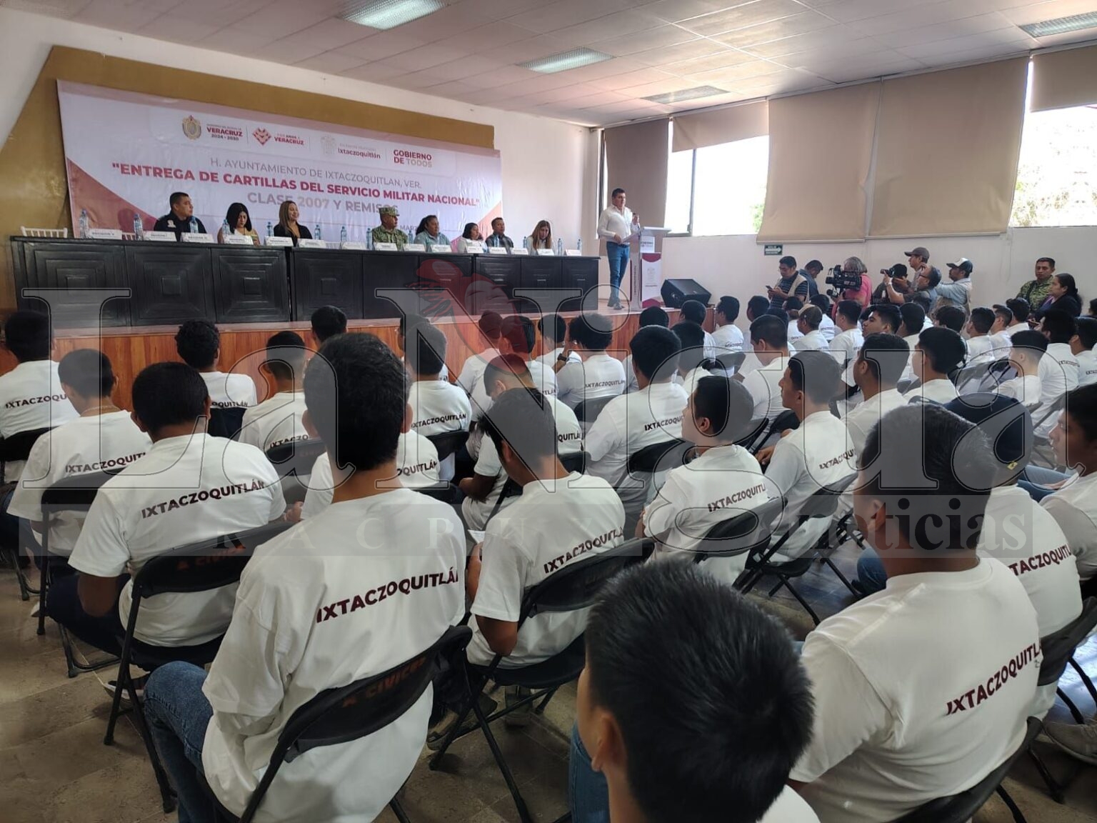Ixtaczoquitlán, Ver.- En un acto protocolario, el presidente municipal de Ixtaczoquitlán, Nahúm Álvarez Pellico, acompañado por miembros del cabildo y el Teniente Coronel de Infantería José Rutilio Lara Torres, llevó a cabo la entrega de Cartillas del Servicio Militar Nacional (SMN) a jóvenes de la clase 2007 y remisos.