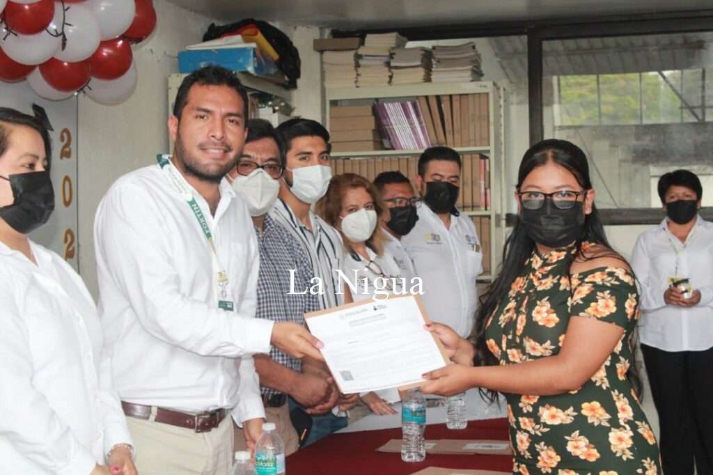 En esta entrega estuvieron presentes la regidora tercera Guadalupe Tepepa García, José Pablo Espinosa García, Alfredo Canela Lozano coordinador del IVEA zona Córdoba, Rosa María Hernández Ávalos supervisora escolar y estudiantes.