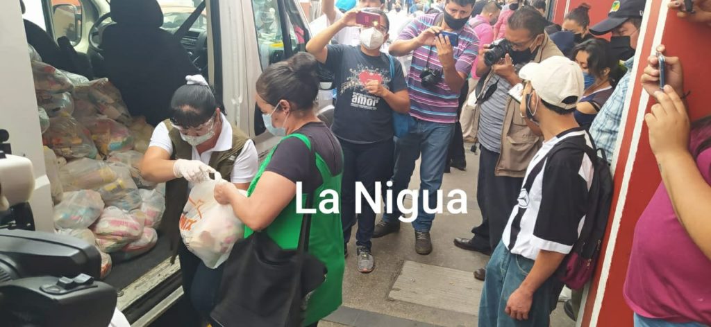 En este reparto auxilio personal de protección civil los cuales varias veces tuvieron que poner orden por que los beneficiarios muchas veces no guardaron su distancia.