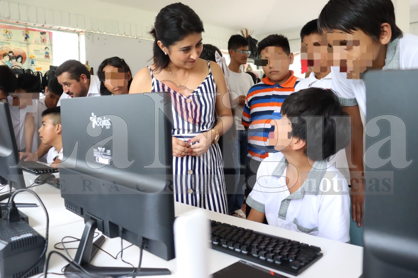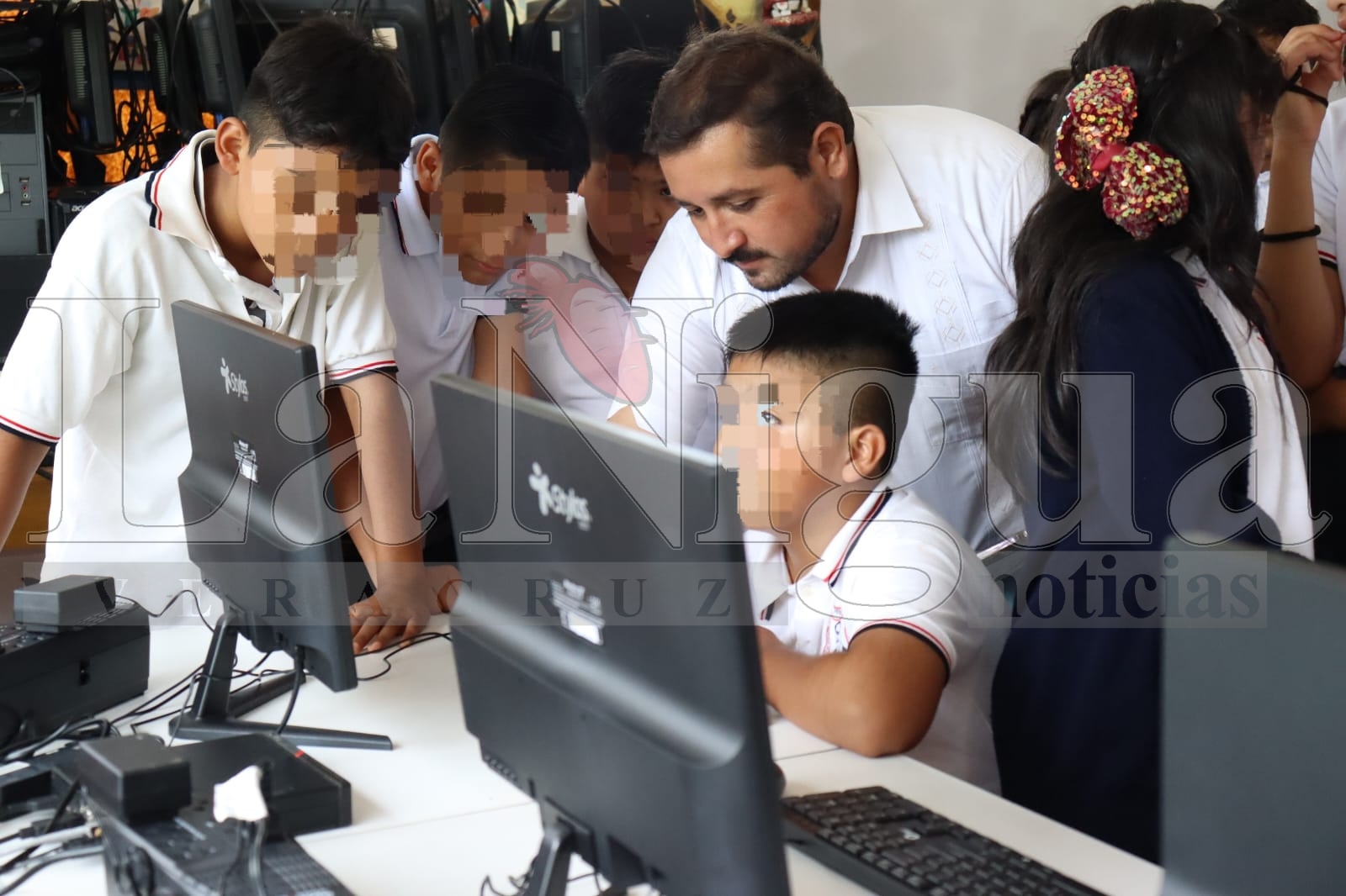 Los estudiantes de la Telesecundaria y de la escuela Primaria de esta comunidad estuvieron presentes y recibieron el equipo de cómputo que brindó el Ayuntamiento como parte del proyecto de la Transformación de Fortín.