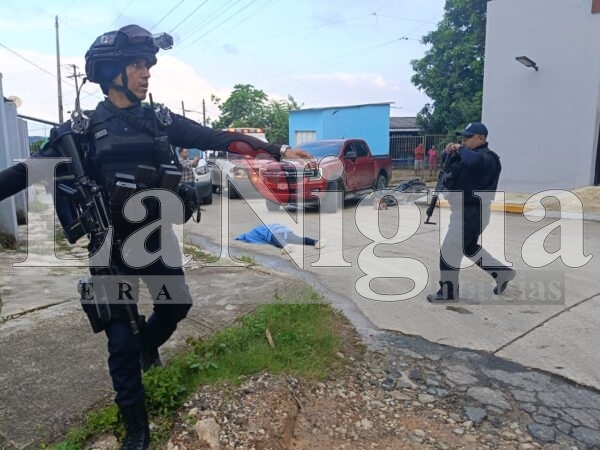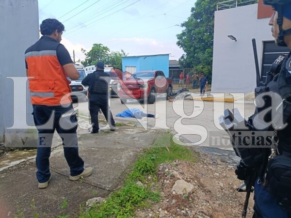 El cuerpo de la presunta sicaria quedó tirado boca abajo sobre la calle Playón Sur, casi esquina con la calle Libramiento de Pemex, a unos metros, la unidad del líder sindical y la motocicleta donde viajaba la mujer que intentó privar de la vida a Juan Bautista.