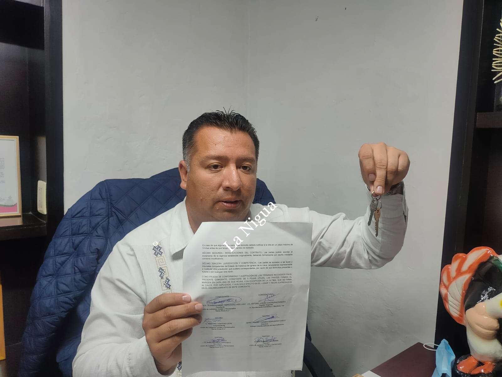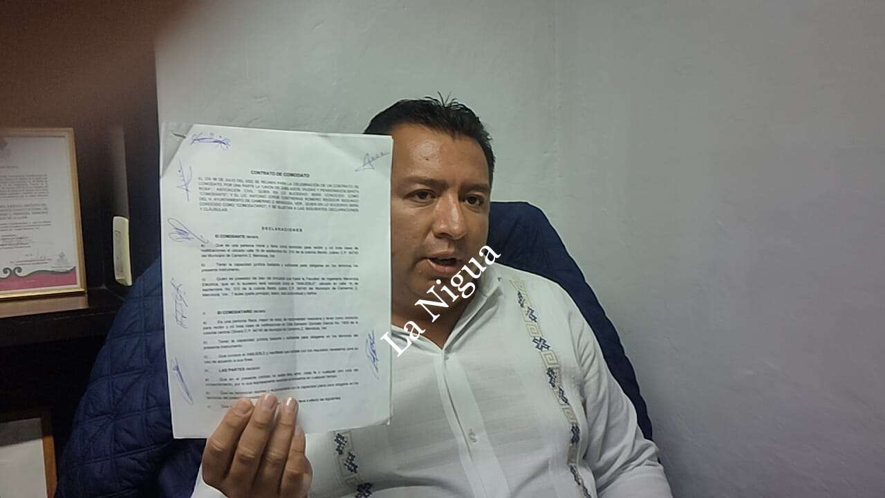“ Nosotros firmamos un comodato el 6 de julio del año en curso con la Unión de Jubilados, Viudas y Pensionados Santa Rosa, en la cual aparece la firma del presidente, profesor Rodolfo Ángel Hernández Arellano; su servidor como regidor segundo; el vicepresidente, el ciudadano Porfirio Centeno León, la maestra Luz del Carmen como testigo; Raúl Alducin, que es el tesorero, y también el tesorero Efrén Ramírez”, externó.