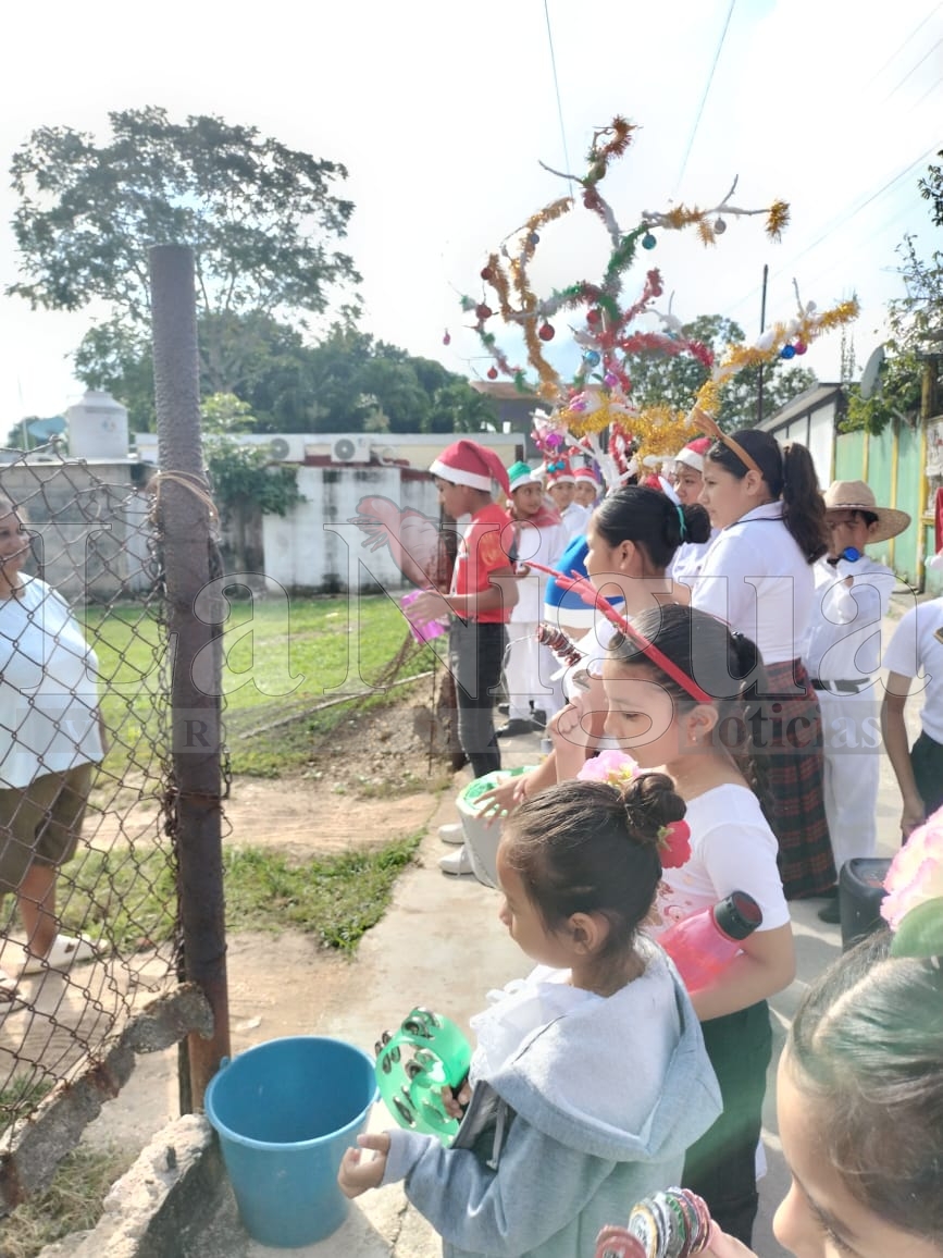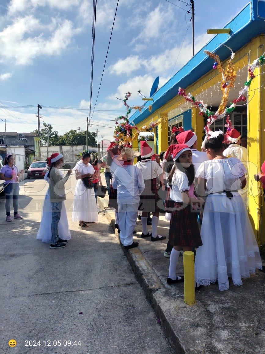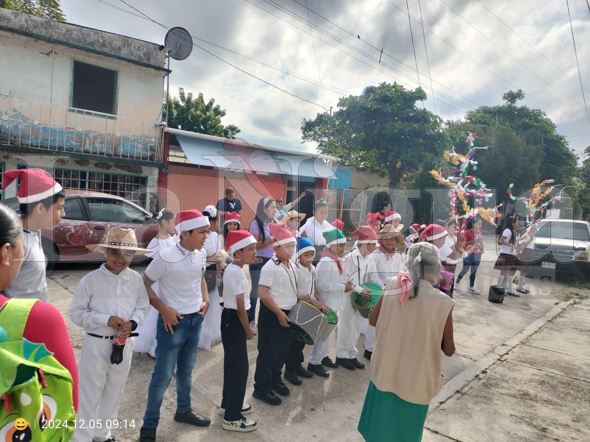 Más linda es la virgen que todas las flores, los estudiantes, docentes y padres de familia de la escuela primarias Cultura Olmeca, ubicada en la colonia del mismo nombre, salieron a las calles para fomentar y preservar está tradición navideña de la familias mexicanas.