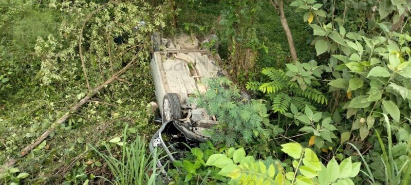 La unidad en la que viajaban las jóvenes terminó aplastada, en el monte y con las llantas arriba. Afortunadamente sufrieron lesiones menores.