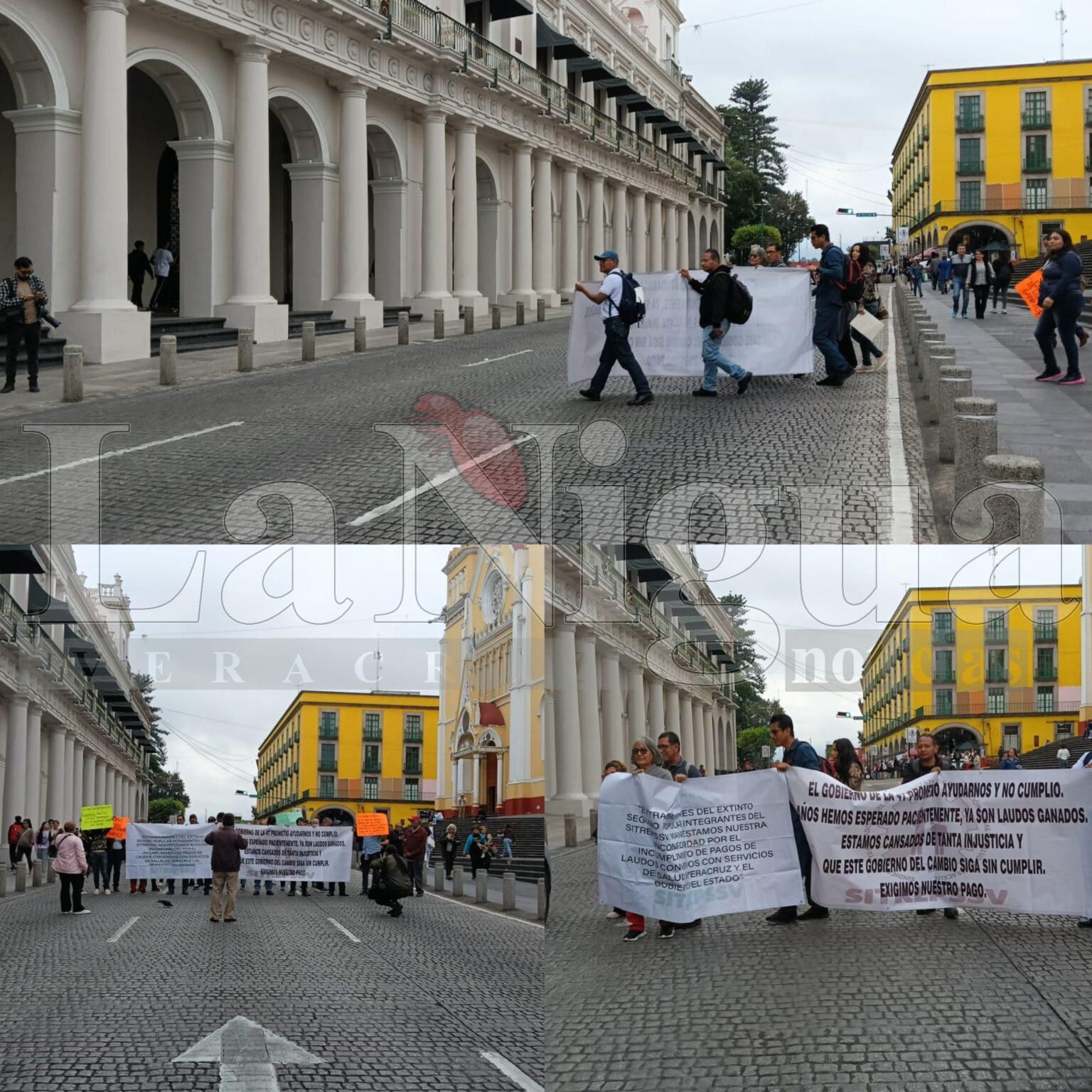 XALAPA, VER. (5 de noviembre de 2025).- Un grupo de ex trabajadores del extinto Seguro Popular mantiene bloqueados todos los carriles de la calle Enríquez, frente al Palacio de Gobierno, en el centro de Xalapa, para exigir al gobierno estatal el pago de un laudo laboral ganado a favor de 67 trabajadores.