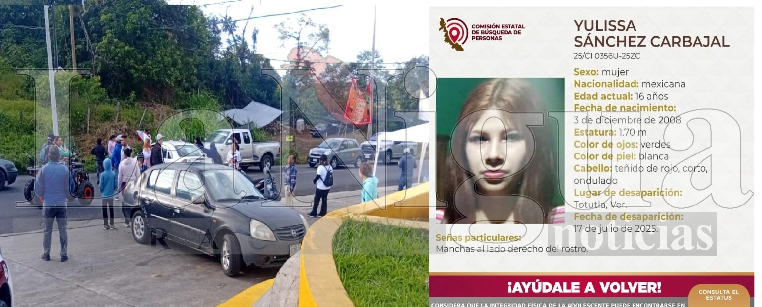 TOTUTLA, VERACRUZ.- Habitantes de este lugar, exigen la aparición de Yulissa Sánchez Carbajal, de 16 años de edad, quien desapareció el pasado 17 de julio de 2025 en esta pequeña ciudad.