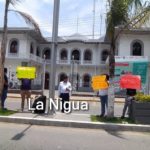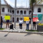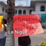 Piden aperturar sus negocios o que el ayuntamiento los apoye económicamente, hasta las 16 horas continúan en la avenida Hidalgo, con una bocina amplificada piden la presencia de Melitón Reyes Larios alcalde de este muncipio.