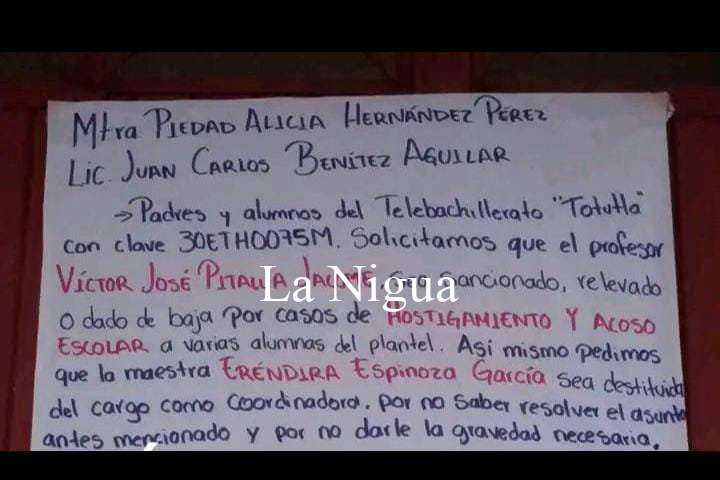 También acusaron que la coordinadora del Teba; Erendia Espinoza, al ser conocedora de la situación hasta el momento no ha hecho nada para reportar y sancionar al maestro, por lo que también piden su renuncia.