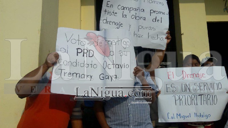 Los manifestantes, provenientes de las colonias: Miguel Hidalgo, Jardines, Gómez Farias y López Mateos, con pancartas vienen exigiendo, la construcción de drenajes y dónde, manifiestan que algunas colonias, son favorecidas porque tienen compromisos políticos y han recibido más obras, siendo estos sectores tienen más de cuarenta y cinco años de existencia.