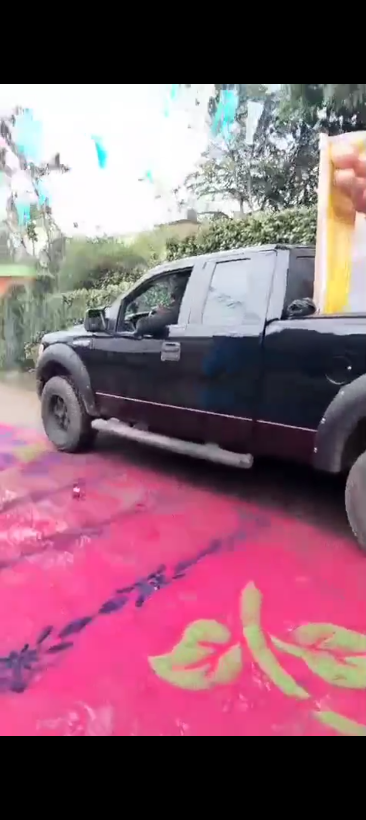 Durante el incidente, se señaló que un habitante intentó impedir que el conductor continuara avanzando sobre los tapetes; sin embargo, el sujeto habría reaccionado de manera imprudente, presuntamente intentando embestirlo con la camioneta, lo que generó momentos de tensión entre los presentes.