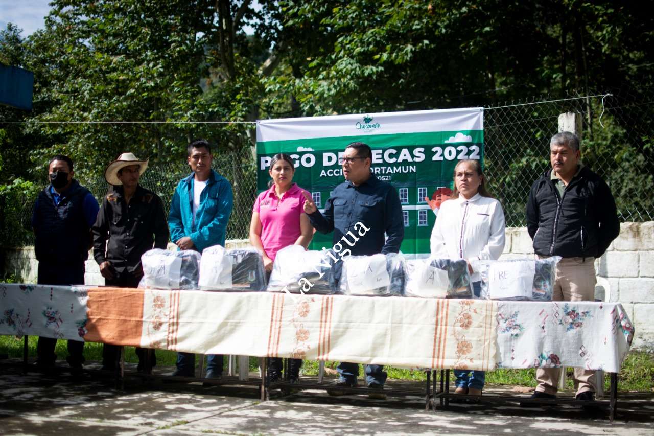 El alcalde Ernesto Ruiz García, en compañía de ediles, dió inicio este martes 6 de septiembre, a la entrega de uniformes escolares para nivel primaria de todo el municipio de Chocamán.