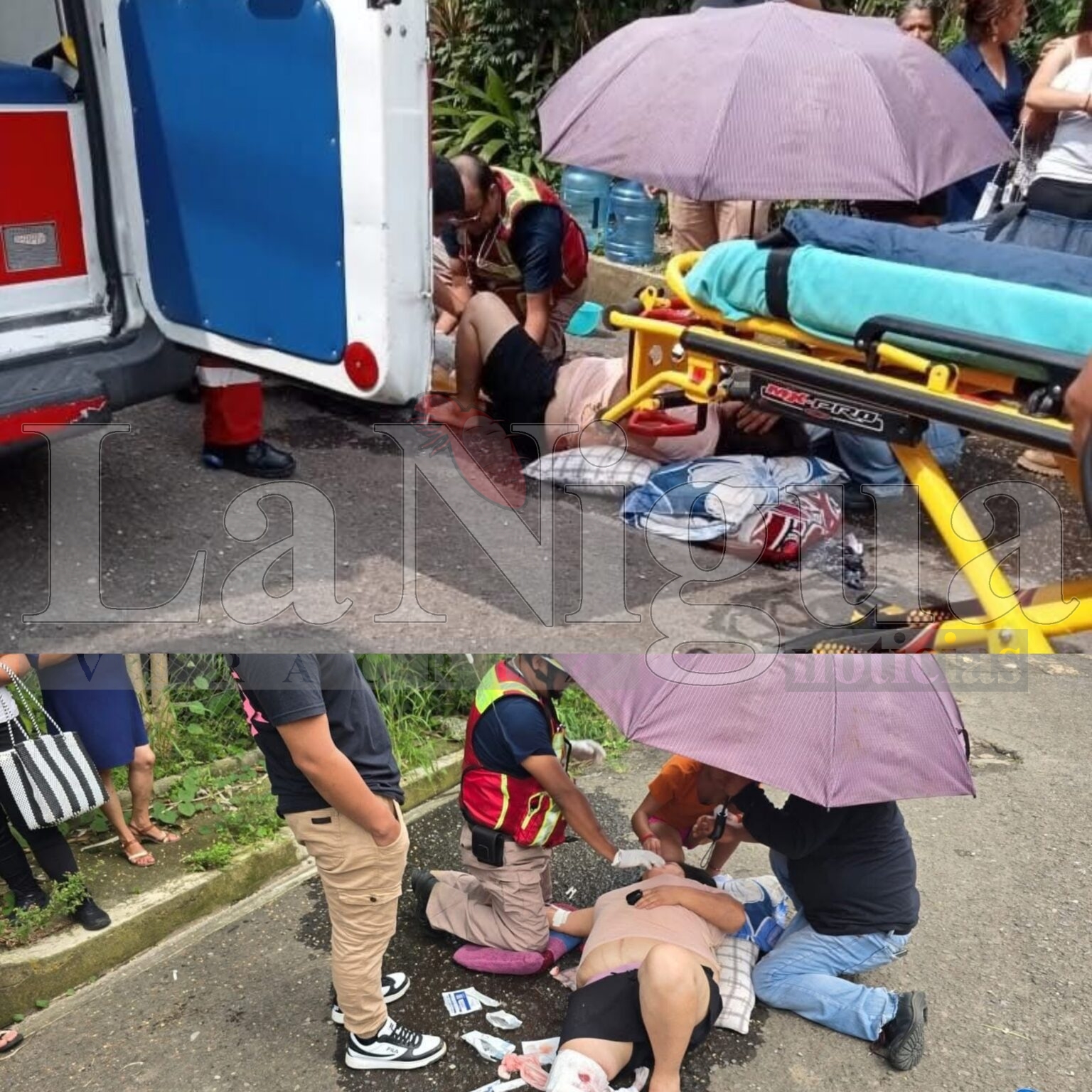 Vecinos solicitaron auxilio y minutos después arribaron rescatistas de Primeros Respondientes, así como técnicos en urgencias médicas de Cruz Roja y Cruz Ámbar, quienes trasladaron a la lesionada a un hospital.
