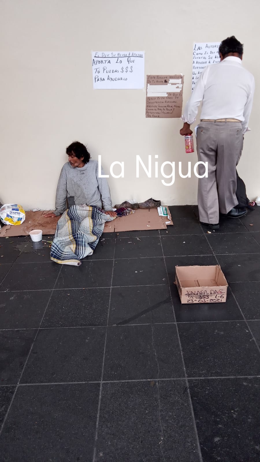 Esta persona había colocado una cartulina en los muros donde solicitaba la ayuda de las autoridades, pidiendo agua embotellada, alimentos, pañales, ropa y vitaminas ya que padecía de un estado de desnutrición avanzado.
