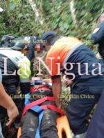 Con sogas y camillas rígidas, los socorrías descendieron y rescataron a los tripulantes del vehículo accidentado.