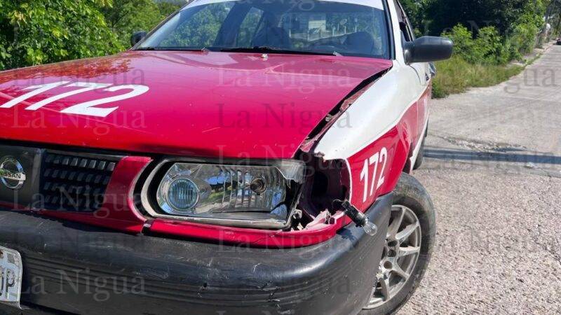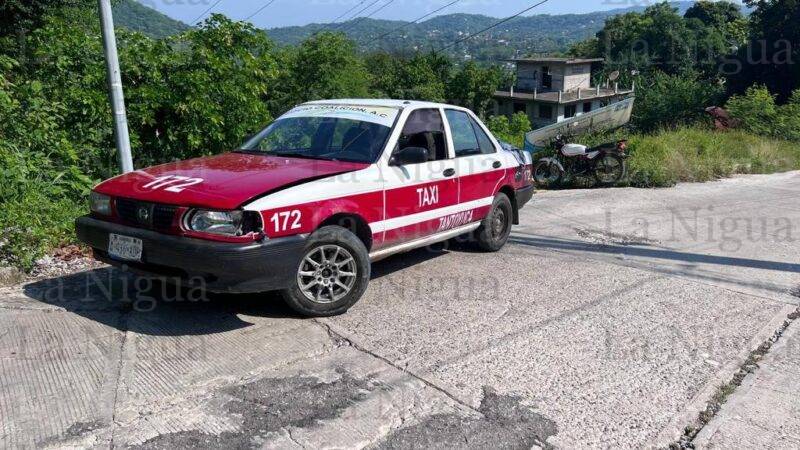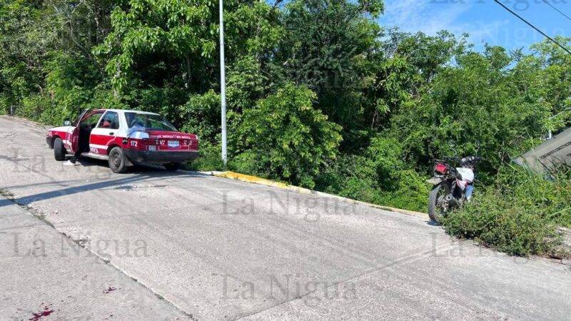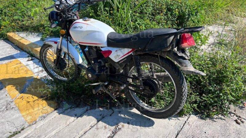 Al sitio arribaron elementos de Tránsito Municipal quienes ordenaron el traslado del vehículo de alquiler Nissan, Tsuru, marcado con el número económico 172, y la motocicleta Vento, 150, de color blanca, al mesón local de Grúas Monzalvo.
