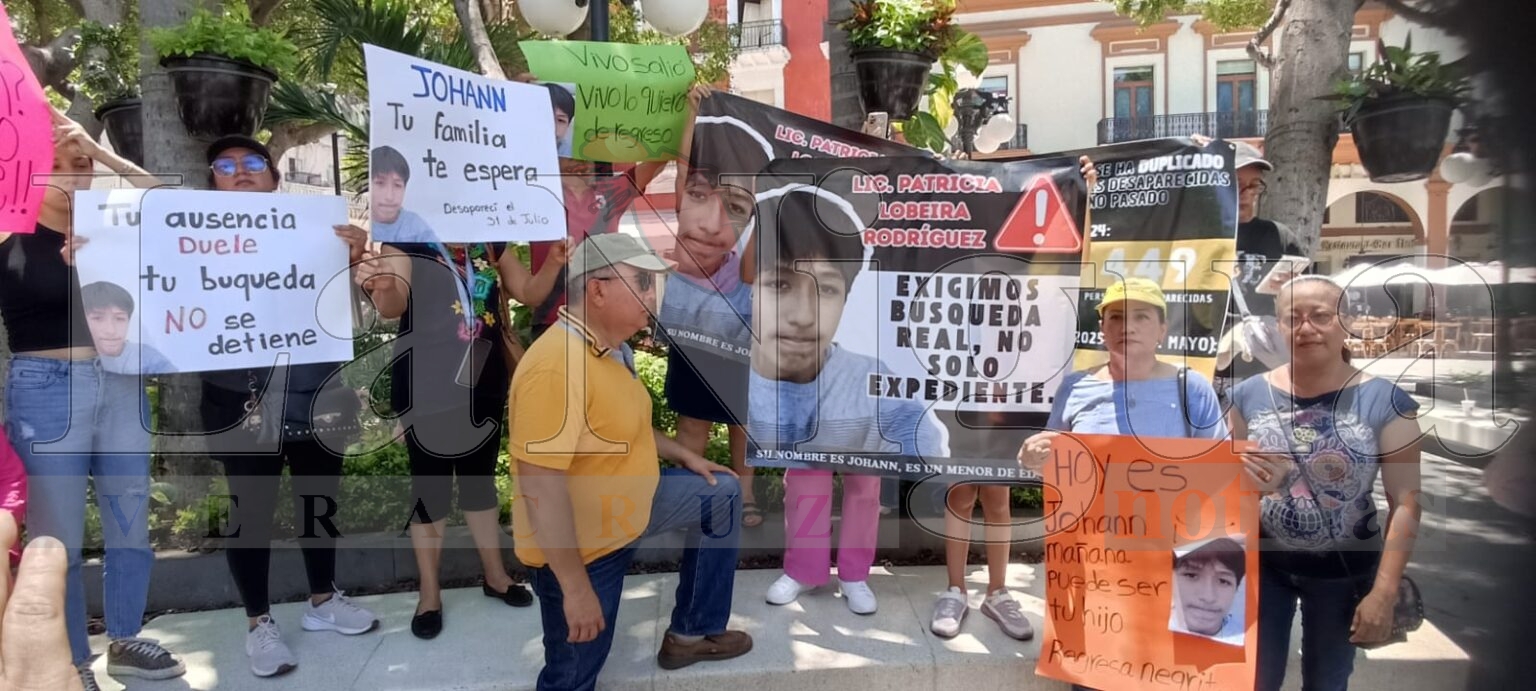 Veracruz, Ver.- Familiares y amigos se manifestaron en la mañana de este lunes 4 de agosto para exigir la aparición del joven de 16 años, Johan Ortega Olivares.