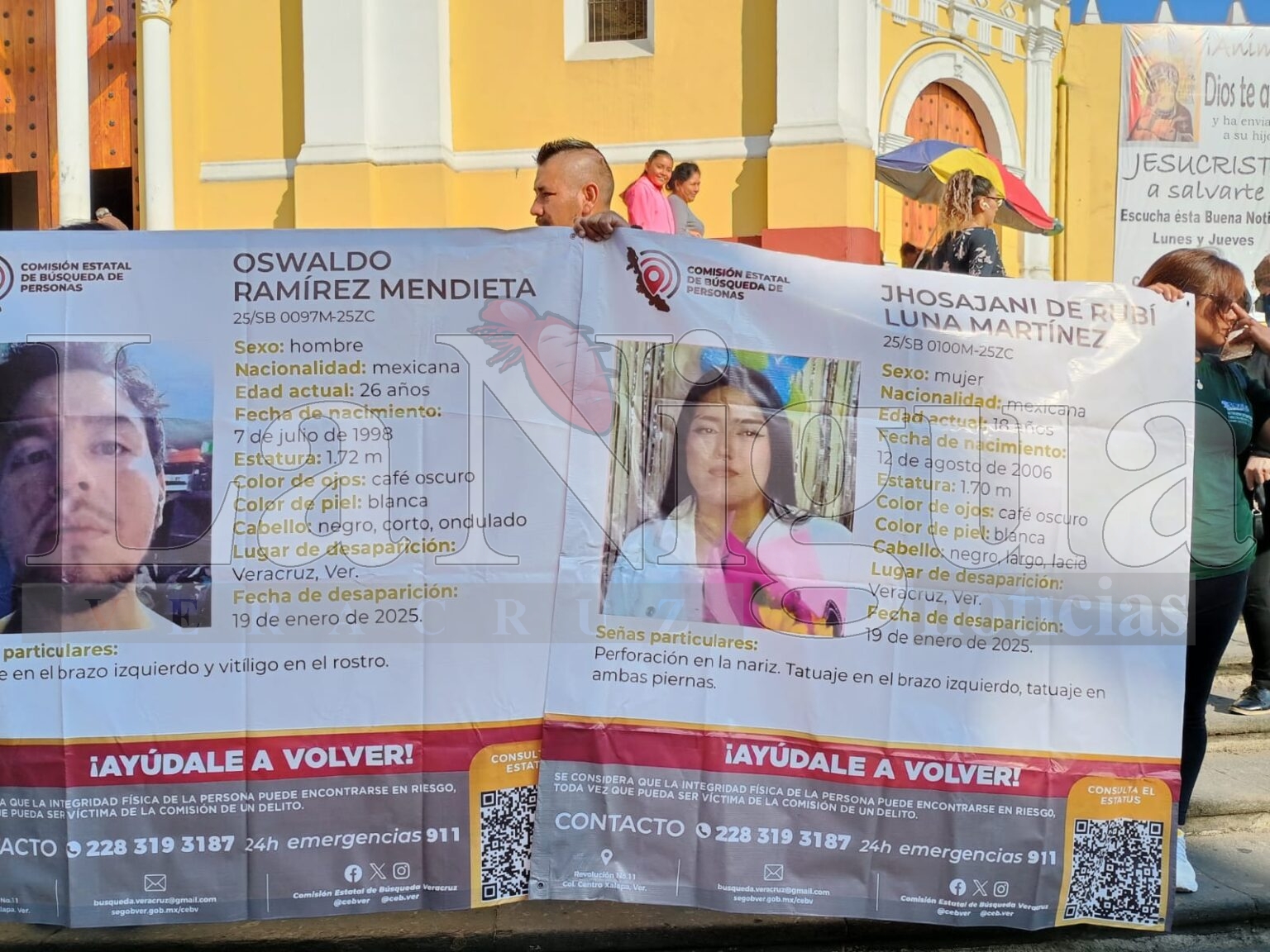 Xalapa, Ver.- Por tercera ocasión, familiares, amigos y conocidos de Jhosajani Rubí Luna Martínez y Osvaldo Ramírez Mendieta, desaparecidos el pasado 19 de enero en Veracruz Puerto, se manifestaron en la Plaza Lerdo para exigir a las autoridades avances en la investigación.