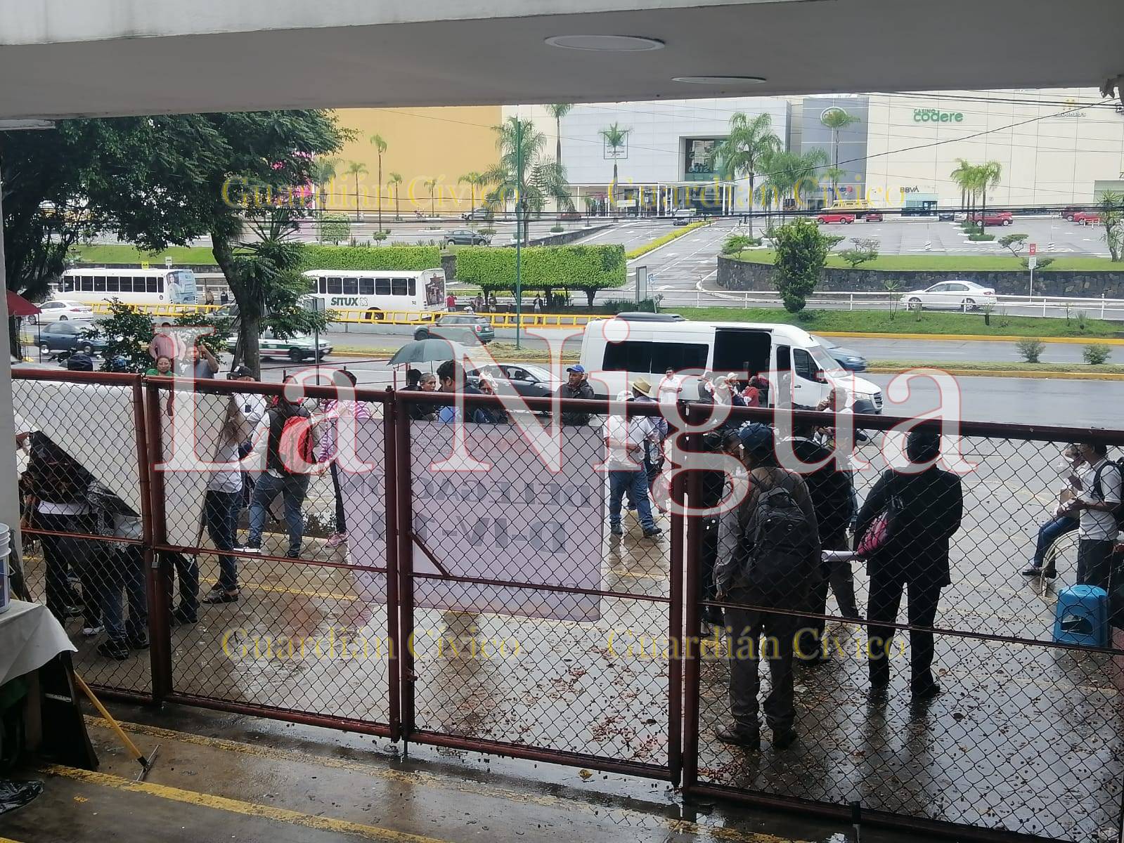 A pesar de la lluvia que está cayendo esta mañana de martes en esta ciudad de Xalapa eso no impidió que estas personas, por cierto todos de la tercera edad, se estén manifestándose, y minutos después de las 9 de la mañana entró una comisión de los mismos manifestantes a dialogar con funcionarios de la secretaría de educación de Veracruz.