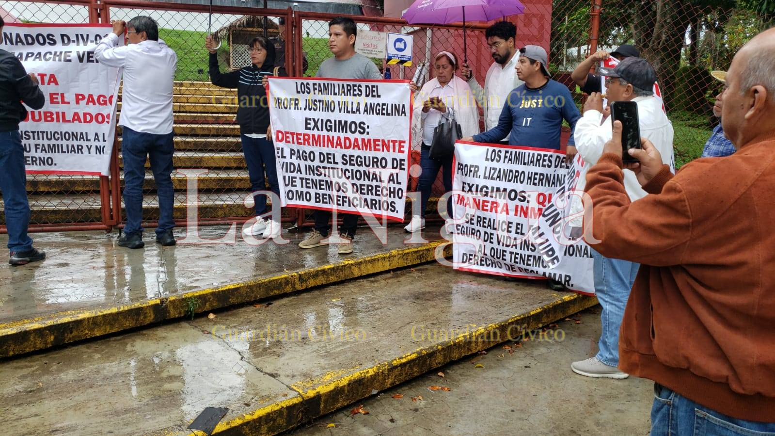 Xalapa, Ver.- Decenas de docentes y familiares de diferentes maestros y maestras de la sección 32 del SNTE, se manifestaron y cerraron todas las entradas de la secretaría de educación de Veracruz SEV, exigen que se les pague el ” seguro de vida institucional” que tienen derecho como beneficiarios, como es el caso de los docentes ya fallecidos que son los profesores , Justino Villa Angelina y Lizandro Hernández, es la fecha que no se les ha pagado.