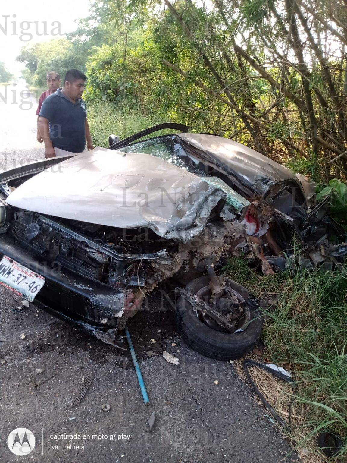 Naranjos-Amatlán, Ver., 9 de junio de 2023. El conductor de un vehículo compacto perdió la vida de manera instantánea tras impactarse con pesada unidad, este jueves alrededor de las 16:30 horas, a la altura del kilómetro 76+500 de la carretera federal 180 Matamoros-Puerto Juárez, en inmediaciones de un hotel que se ubica rumbo a la congregación d Cervantes.