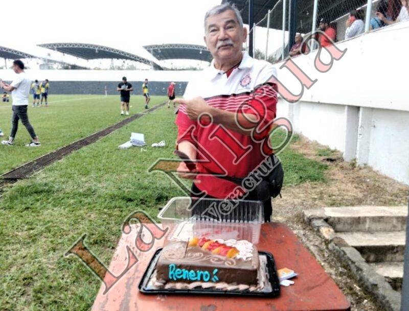 El doctor Juan Carlos Renero Mendiola fue agasajado en la cancha del estadio Murillo Vidal, donde festejó su cumpleaños, escuchó las mañanitas en el sonido local y partió su pastel.