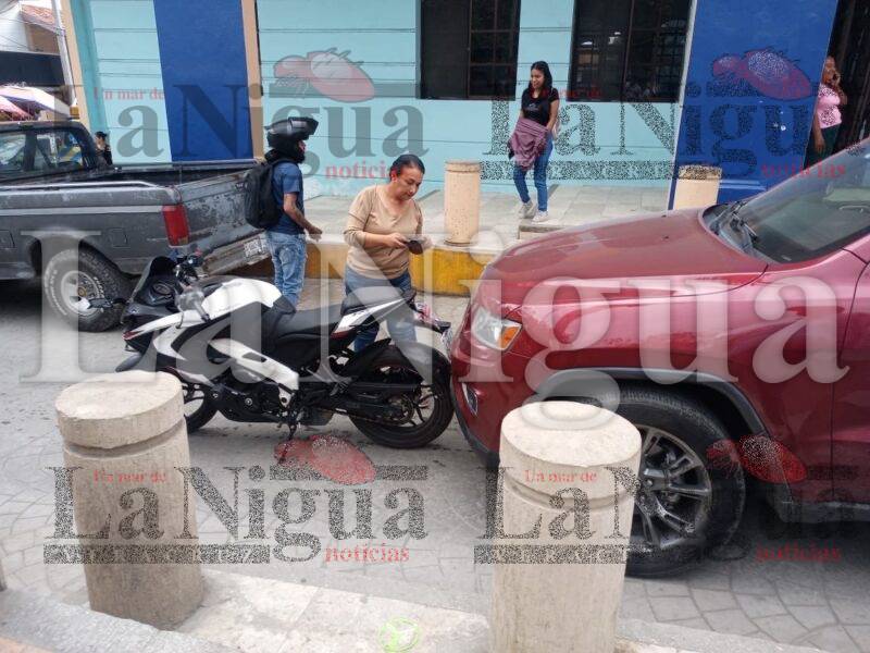 El hecho de tránsito se suscitó sobre la calle 5 de Mayo, justamente frente a la Presidente Municipal y a un costado del Parque Constitución.