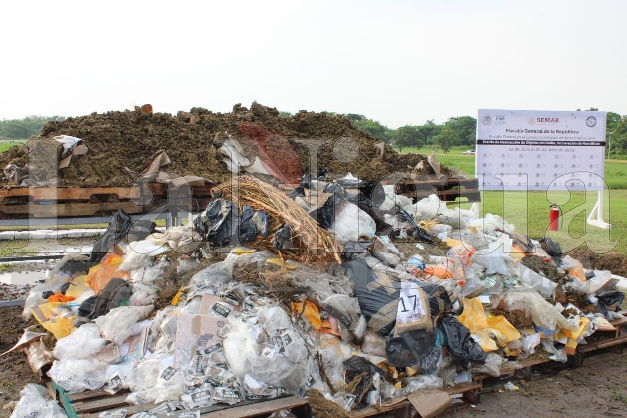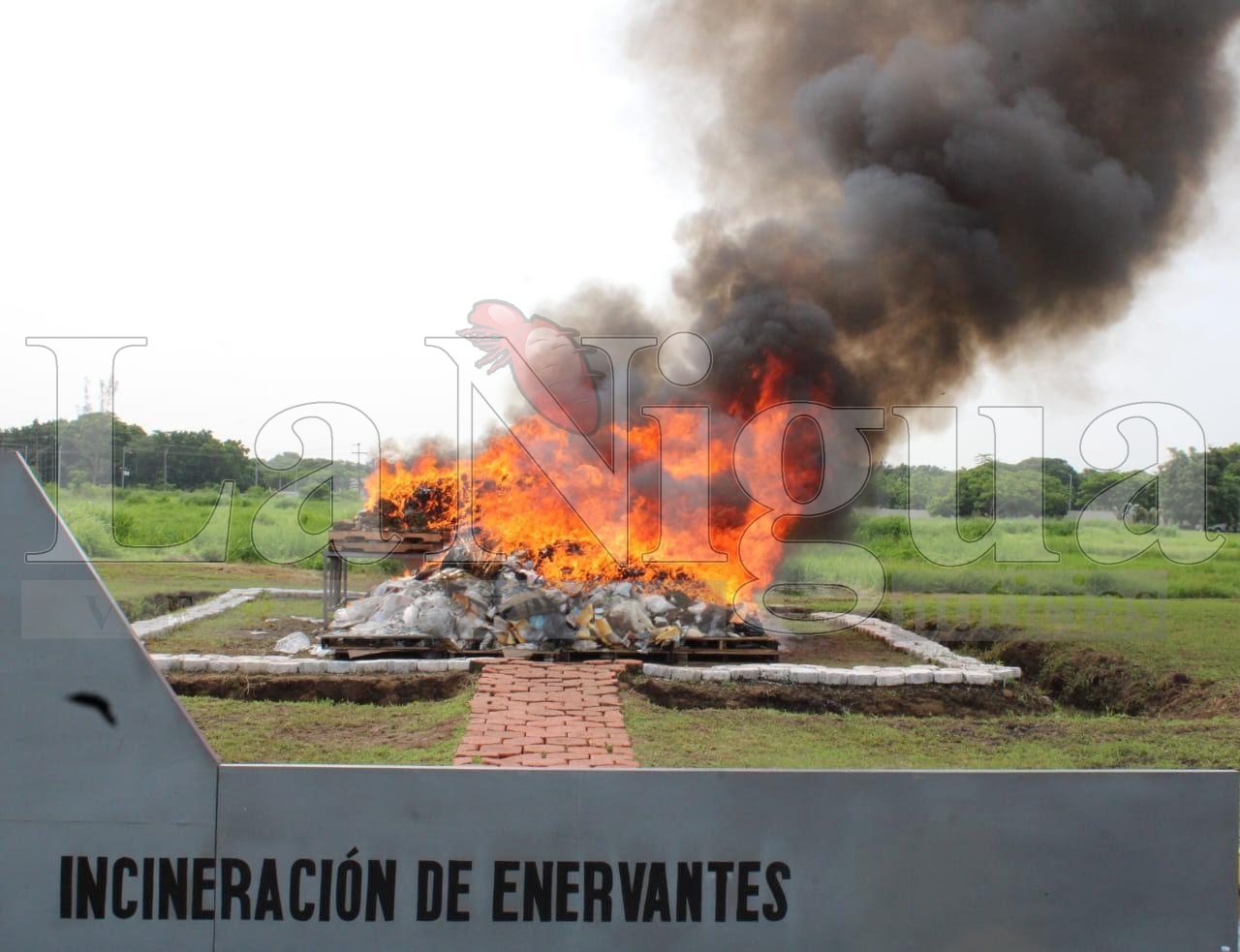Lo incinerado incluyó una tonelada ocho kilos 62 gramos 20 miligramos de marihuana, 16 kilos 643 gramos 800 miligramos de cocaína, cinco kilos 301 gramos 507 miligramos de metanfetamina, mil 363 pastillas psicotrópicas, 100 miligramos de Heroína, 21 gramos 500 miligramos de Psicotrópicos, tres kilos 980 gramos 900 miligramos de Codeína, 398 gramos de Etilfenilacetato, un litro 35 mililitros de cocaína, un kilo 512 gramos 779 miligramos de sustancia negativa y 86 objetos del delito.