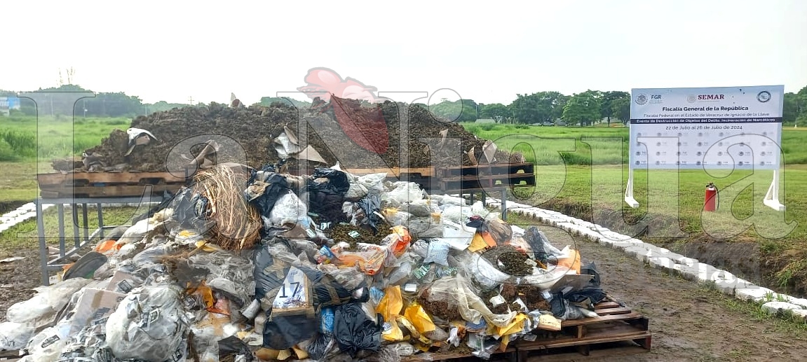 Veracruz, Veracruz, 25 de julio de 2024.-La Fiscalía General de la República (FGR) en su Fiscalía Federal en el Estado de Veracruz de Ignacio de la Llave, incineró una tonelada 35 kilos 509 gramos 626 miligramos de narcóticos, relacionados con diversas Carpetas de Investigación y averiguaciones previas.