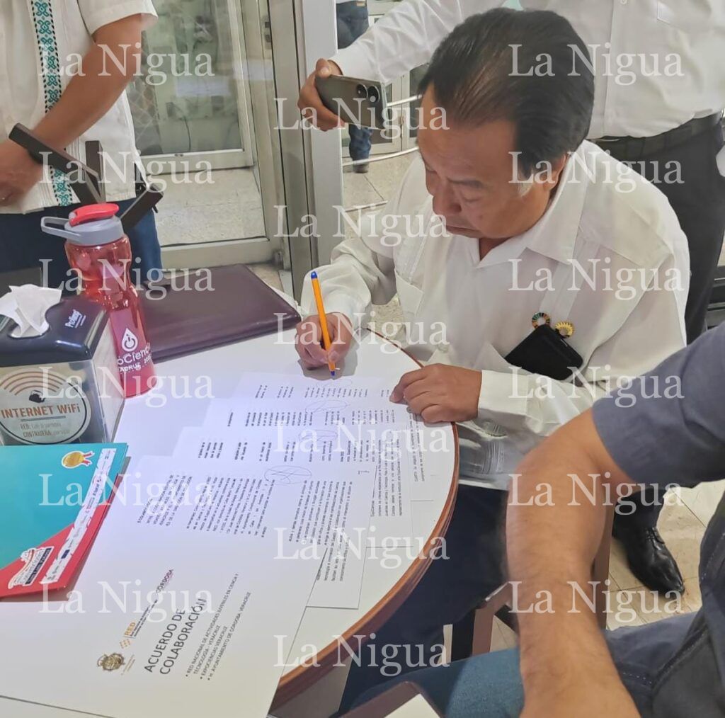 La firma de este convenio fue realizada por la primera autoridad y el Coordinador Estatal RED, Rafael Flores Hernández y el Director de ExpoCiencias Veracruz, Víctor Manuel Hernández Melgarejo.