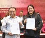 Ciudad de México., (16 de marzo de 2023).- El presidente municipal, Juan Martínez Flores, y la síndica Vania López González firmaron el “Convenio para el Fortalecimiento del Ordenamiento Territorial y la Planeación del Desarrollo Urbano en México”, que tiene el objetivo de apoyar a los gobiernos locales a que desarrollen sus capacidades para elaboración y actualización de instrumentos de planeación urbana.