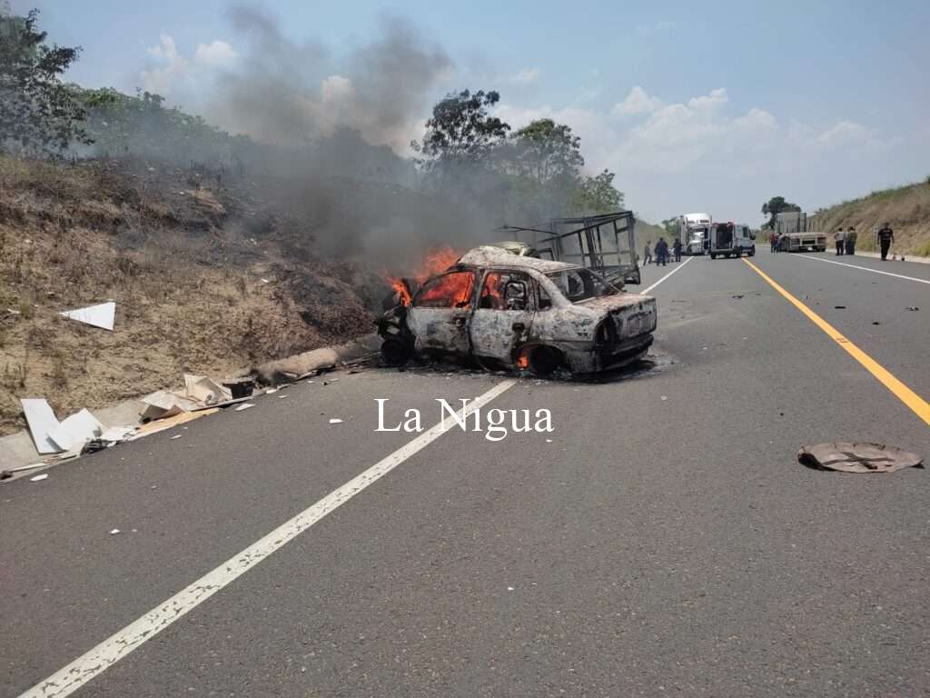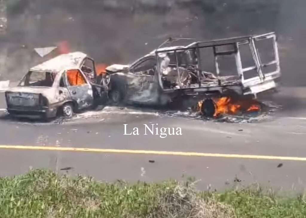 Cómo fuera informado oportunamente en este medio informativo, dos personas perdieron la vida; al impactarse contra una camioneta y posteriormente ambas unidades, se incendiaran tras el fuerte percance.