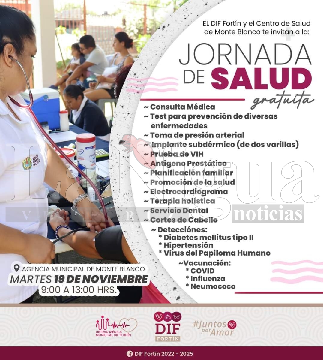 El DIF Municipal de Fortín, en colaboración con el Centro de Salud de Monte Blanco, invita a la comunidad a participar en su Jornada de Salud Gratuita. Esta actividad busca promover la prevención y detección temprana de enfermedades, así como la aplicación de vacunas y servicios médicos esenciales.