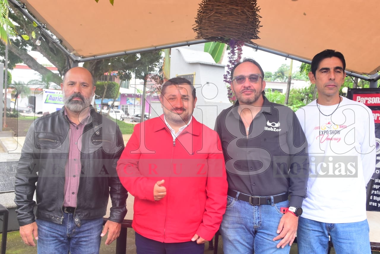 En rueda de prensa, Eduardo Alonso García Viveros, gerente del kiosco, Didier Jiménez Quinto, coordinador de Comude, Abelardo Aiza Suárez, presidente de la escuela de Motociclismo Veracruz Seguro y Roberto Villarreal Zardain, patrocinador, dieron a conocer este importante evento al cual se espera la presencia de cientos de motociclistas de la región y del país.
