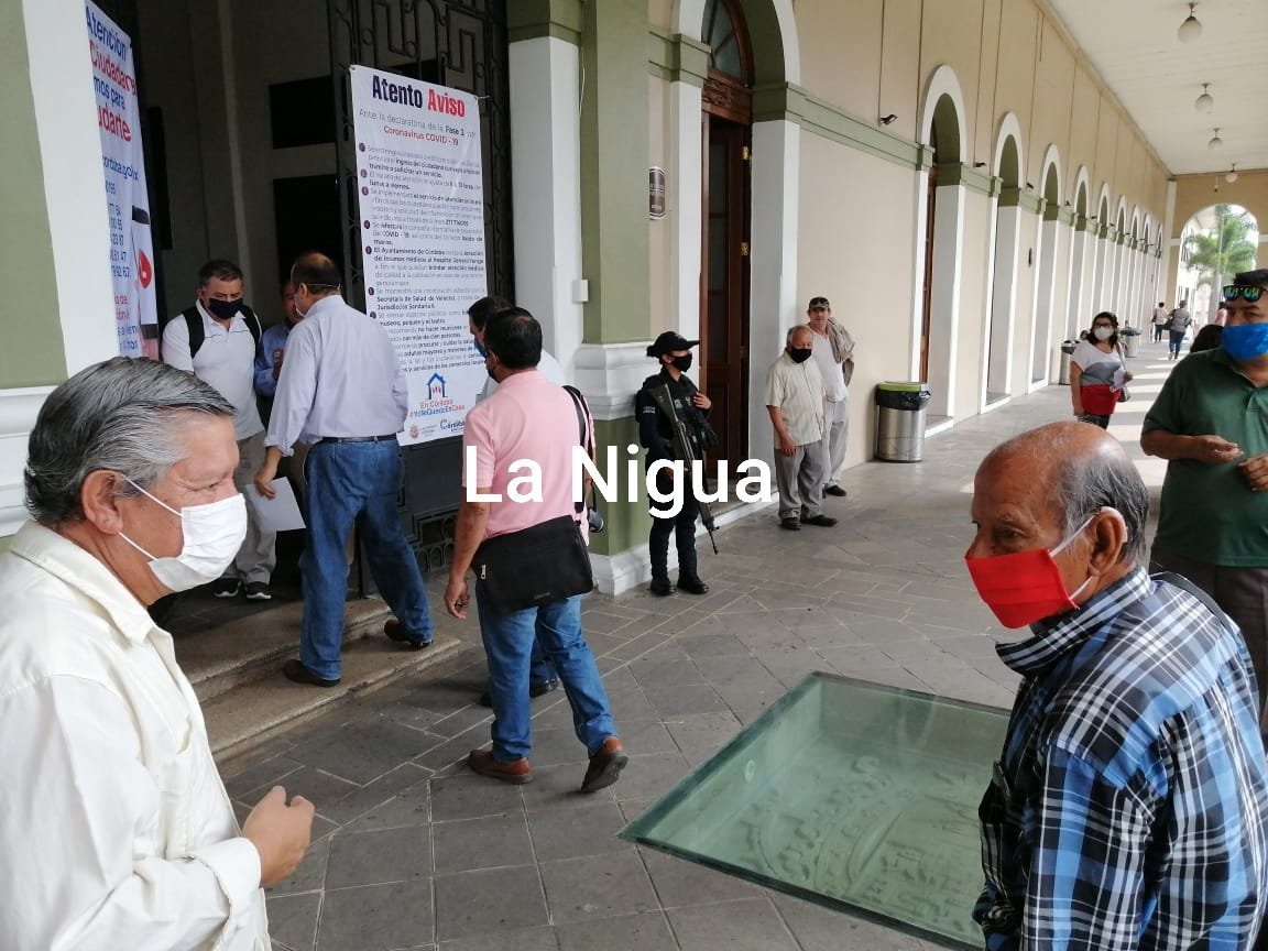 Poco después una pequeña comitiva ingresó para hablar conAndrea Secretaria del Ayuntamiento y con Marco Antonio Viveros de Gobernación Municipal.