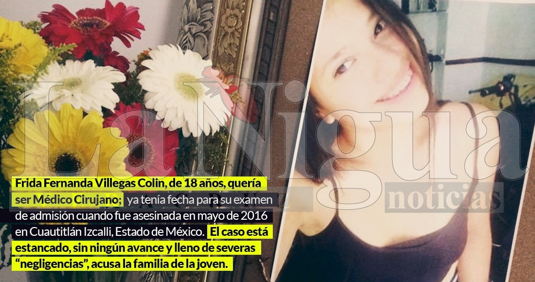El asesinato de Frida Fernanda Villegas Colin, de 18 años de edad, victimada en mayo de 2016 en Cuautitlán Izcalli, sigue impune y estacando. La familia de la víctima destacada una serie de presuntas omisiones e irregularidades por parte la Fiscalía General de Justicia del Estado de México a lo largo de tres años de impunidad.
