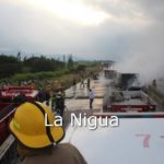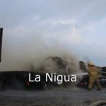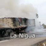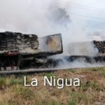 El siniestro sucedió a las 19:00 horas del sábado, cuando se desplazaba sobre la autopista un Tracto camión con doble semi remolque tipo plataforma cargado con sacos de cemento.