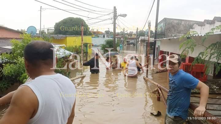 Las fuertes lluvias ocasionadas por el paso del frente frío número 6 ocasionaron que quedaran prácticamente bajo el agua varias colonias de villa Cuichapa, en el municipio de Moloacan.