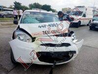 Tampico.-Un saldo de cinco personas lesionadas, entre ellas una menor de edad, dejó fuerte choque entre un automóvil y un taxi ocurrido en transitado cruce de Tampico, al que de inmediato se movilizaron autoridades y cuerpos de emergencia para auxiliar a los afectados.