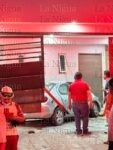 En el lugar quedó con el frente destrozado uno de los vehículos participantes, mientras que el otro terminó en la cochera de un domicilio, acudiendo personal de la Cruz Roja para atender a los heridos y oficiales de tránsito a fin de tomar conocimiento del percance.