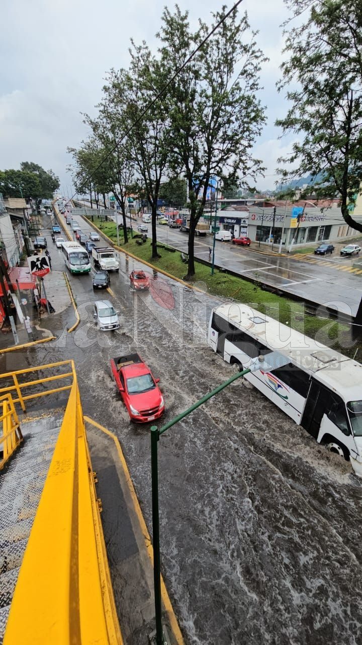 El fenómeno meteorológico, que duró aproximadamente 45 minutos, generó corrientes de agua sobre importantes avenidas como Avenida Xalapa, Lázaro Cárdenas, Marina Nacional, Chedraui Caram y 20 de Noviembre, donde el tráfico se volvió lento y complicado.