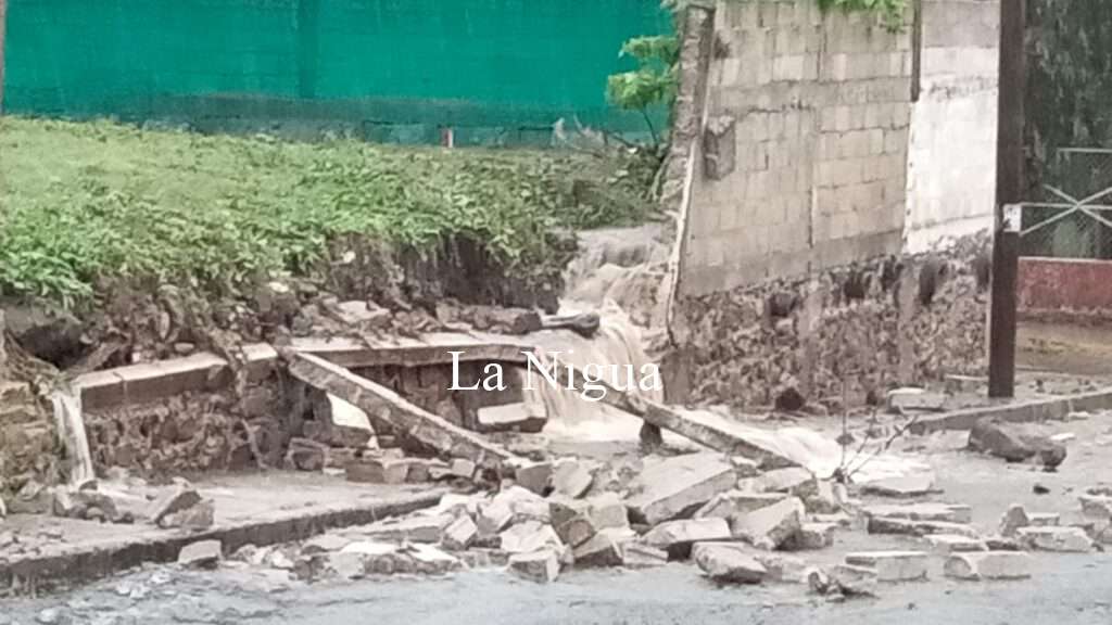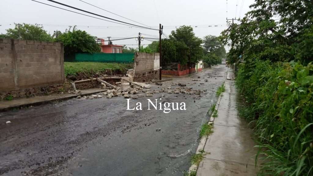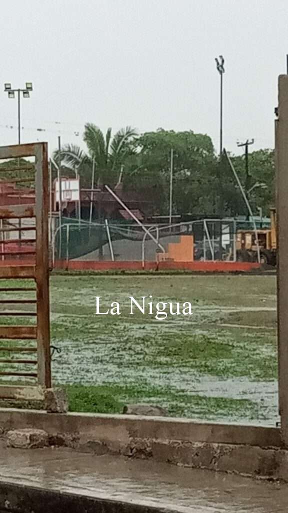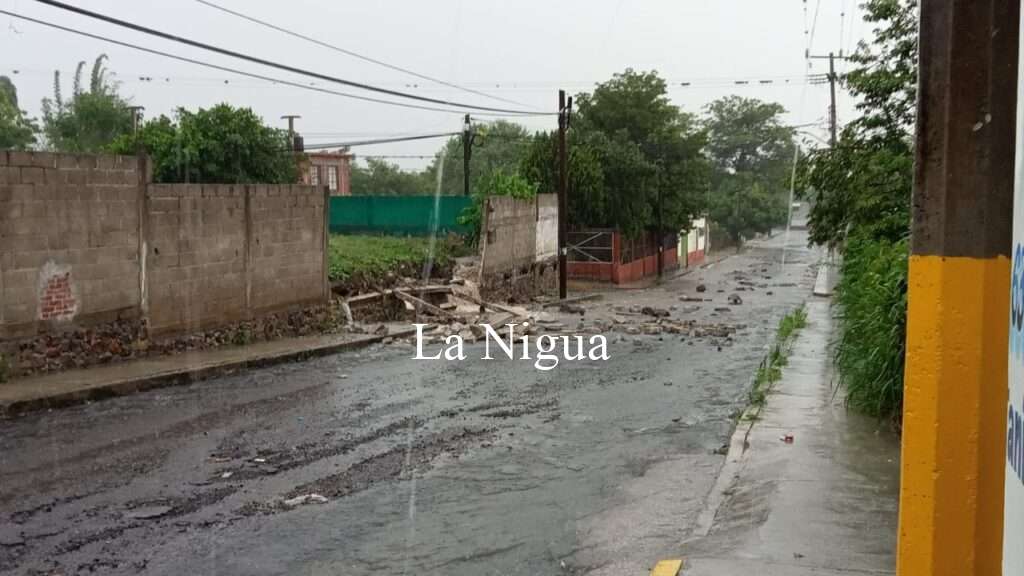 La cantidad de agua acumulada en el Estadio América, provoco que la barda perimetral se colapsara y parte de ella se derrumbó.