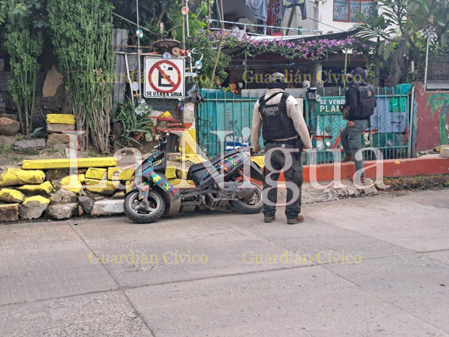 Los oficiales de la fuerza civil recibieron el reporte a través de una llamada anónima, refiriendo que a las 23:00 horas un par de sujetos dejaron la moto abandonada en ese lugar y se fueron caminando con rumbo desconocido sin dejar nada de aviso que dejaban la motoneta.
